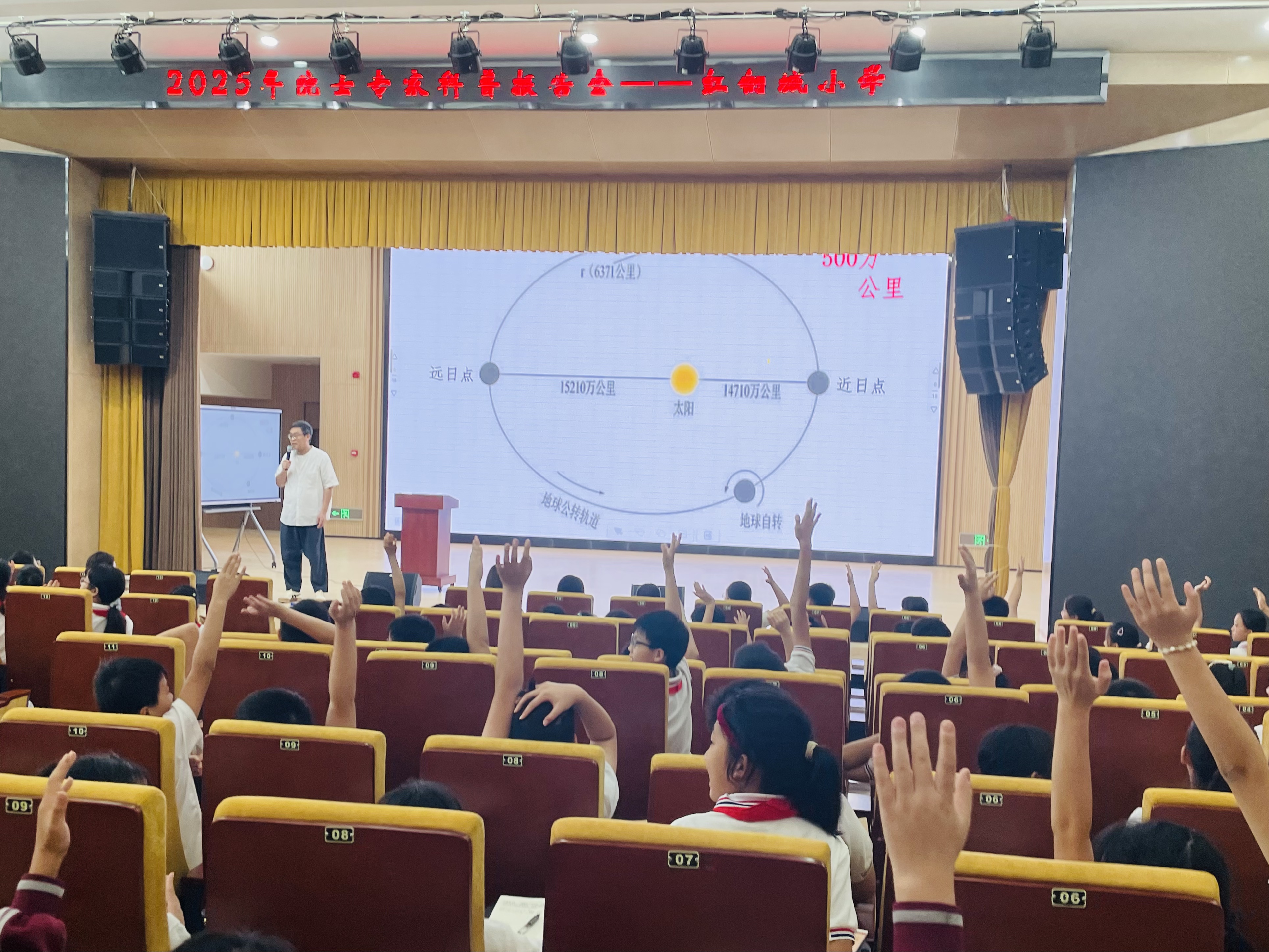 9月23日,正值秋分节气,武汉“院士专家进校园”科普报告会走进青山区红钢城小学。本次活动特邀武汉科学家科普团团员、武汉出版社副编审刘从康老师带来《身边的二十四节气》主题讲座。刘老师以“冬天都有西瓜吃了,为什么还要关心节气?”这一现实问题为切入点,引导学生重新审视二十四节气在当代生活中的意义,开启一场融合科学、文化与生活智慧的探索之旅。