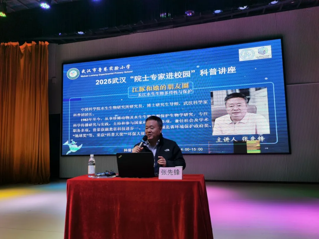 为提升学生的科学素养,武汉市鲁巷实验小学开展“院士专家进校园”科普活动。11月6日,武汉科学家科普团团长、中国科学院水生生物研究所研究员张先锋为鲁巷实验小学的同学们带来了一场别开生面的科普讲座,以“江豚和她的朋友圈——长江水生生物多样性与保护”为主题,张老师以生动有趣的讲解,引领孩子们走进长江生态的奇妙世界,深入浅出地传递了保护水生生物多样性的重要意义。