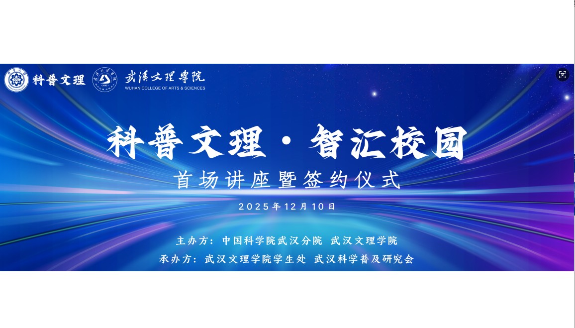 为深入贯彻落实习近平总书记关于科普工作的重要指示精神,推动优质科普资源进校园,12月10日,武汉科学普及研究会与武汉文理学院携手打造的“科普文理”系列活动首场讲座暨合作协议签约仪式在武汉文理学院顺利举行。中国科学院水生生物研究所研究员、武汉科学家科普团团长张先锋,武汉文理学院校党委书记杜永成,中国科学院武汉分院科技合作处处长王亮伟、副处长郭妍,武汉科学普及研究会代表以及文理学院近400名师生代表参加活动。 杜永成在欢迎辞中表示,学院始终致力于培养具有科学素养和社会责任感的应用型人才,此次与武汉科学普及研究会的合作,将为学生们打开一扇通往前沿科学殿堂的窗