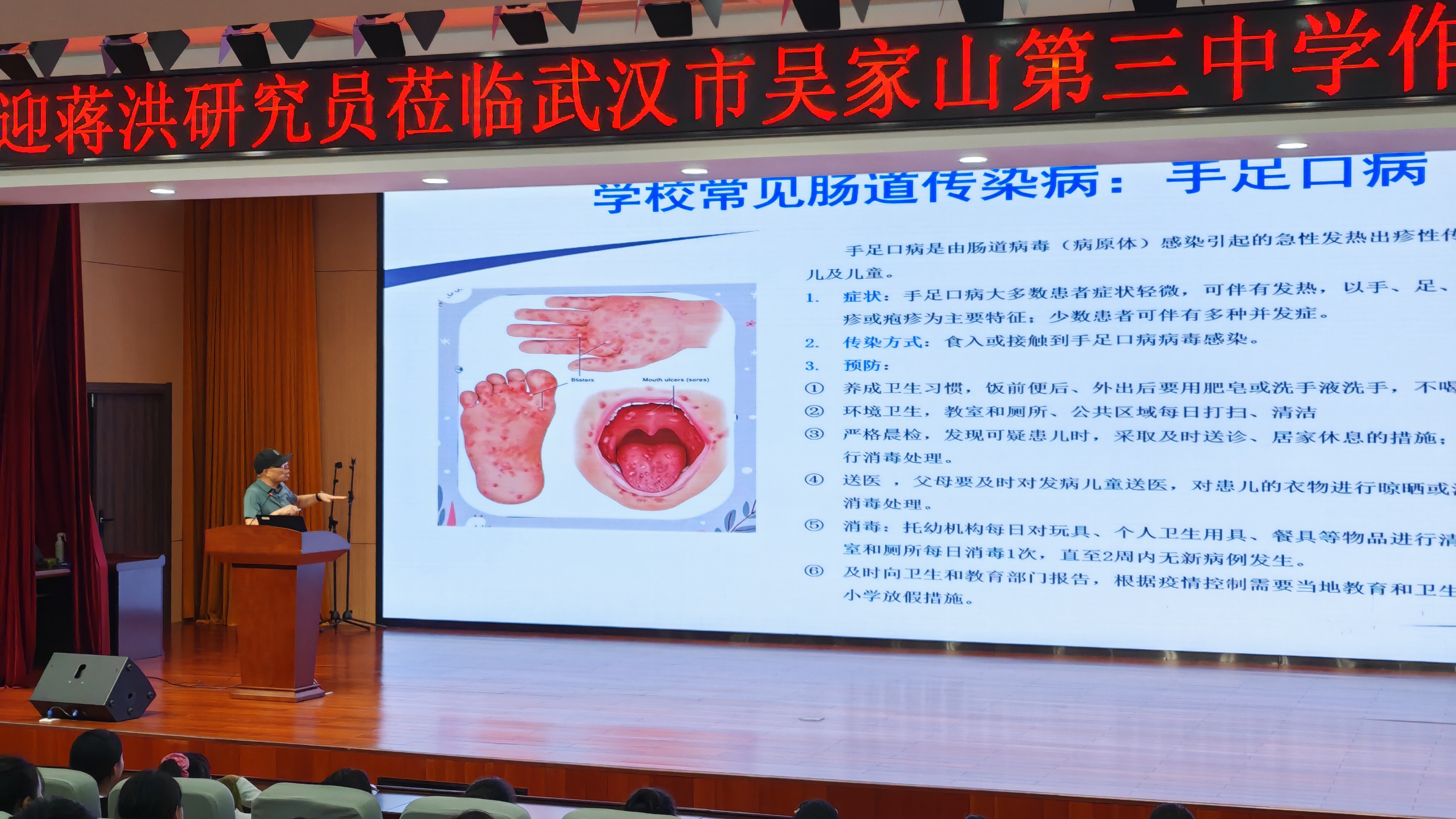 在视频演示环节,蒋教授把镜头对准“四害”微观世界:荧屏上,蚊子的口器像一根抽血针在皮下寻找最粗的毛细血管;蟑螂的腿毛倒挂着刚从垃圾桶带出的沙门氏菌;老鼠的胡须沾着厨房油渍,沿墙根一路留下看不见的“病毒面包屑”;苍蝇的足底黏液把大肠杆菌像盖章一样按在每一块它踩过的食物。蒋教授按下暂停键,声音低沉却掷地有声:“它们不是天灾,是家庭卫生漏洞的人祸。今天回家,把碗池水渍擦干、把地漏盖严实、把垃圾袋口打结,就是把‘四害’的餐厅关门,给全家打一针免费的防疫疫苗。”