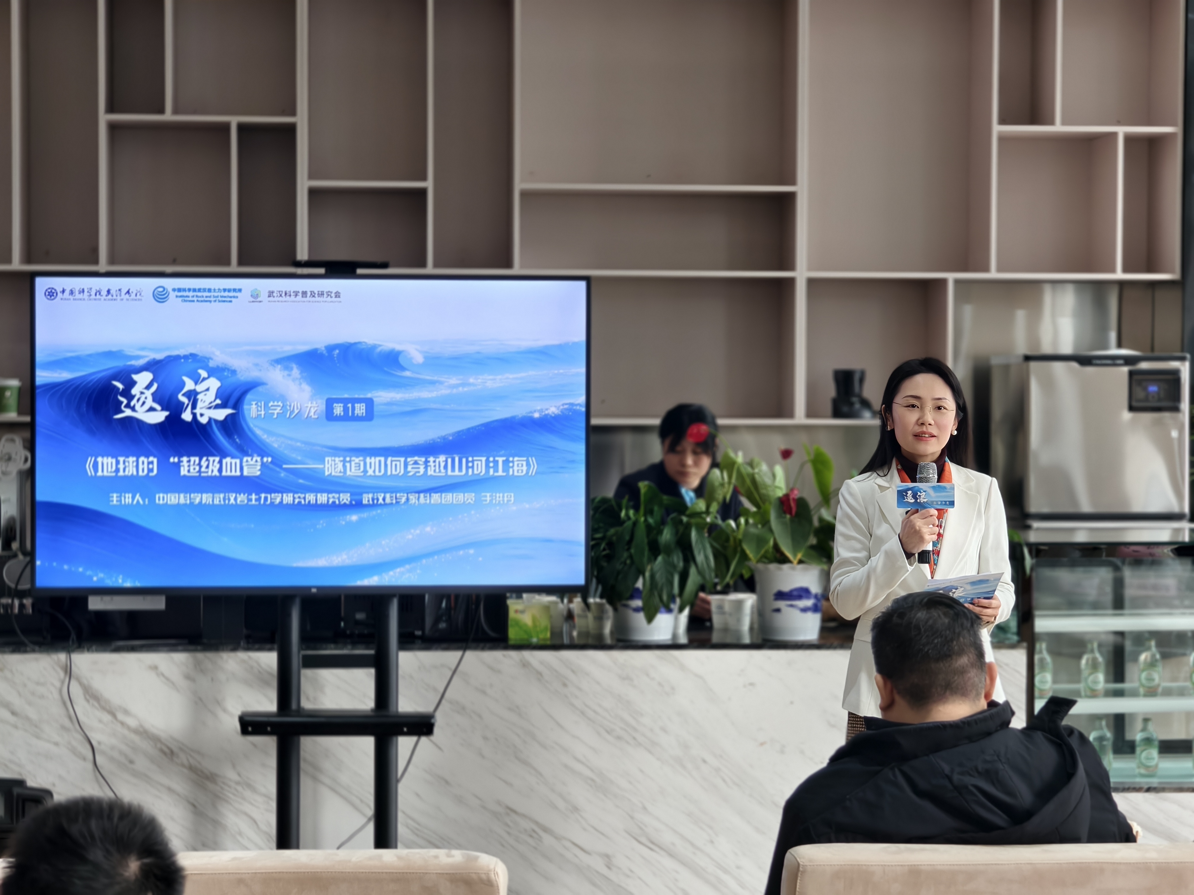 中国科学院武汉岩土力学研究所研究员、武汉科学家科普团团员于洪丹带来《地球的“超级血管”——隧道如何穿越山河江海》主题报告,用生动的语言揭示了隧道工程背后的科技奥秘,带领听众进行了一场“地心穿越”之旅。在互动交流环节,来自不同领域的科技工作者就隧道工程、地下空间开发等话题踊跃提问,现场气氛热烈。报告结束后,施锡林、王亮伟共同为于洪丹颁发“逐浪”科学沙龙的主讲人证书。